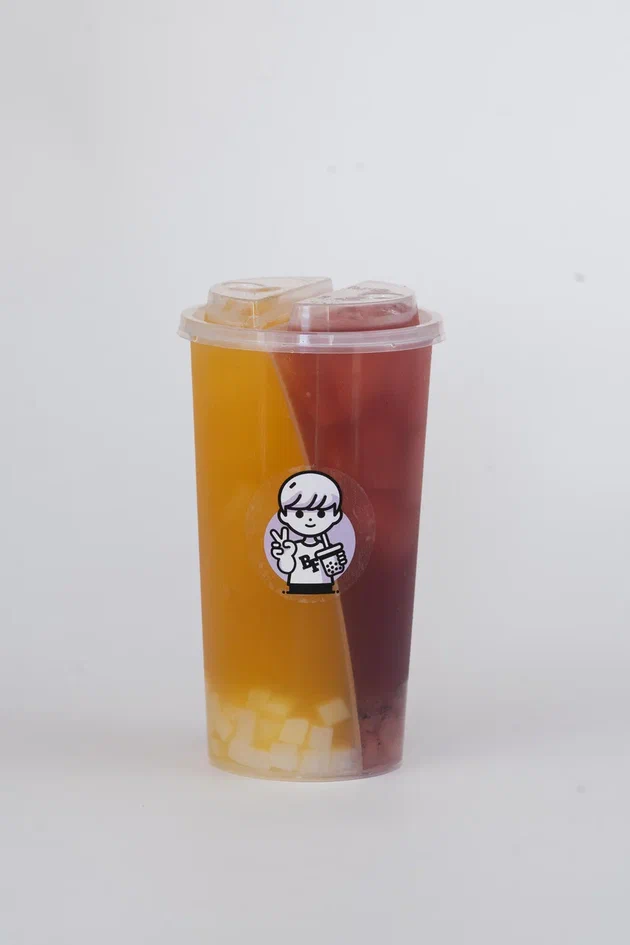 Бобо оригинал, сироп темного винограда, джем черника, улун чай, кокосовое желе, сироп маракуйя, джем манго, улун чай