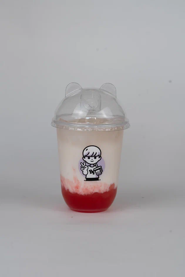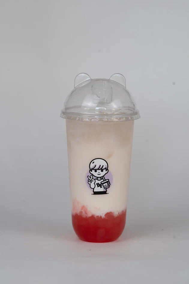 Клубника бобо, сироп обычный сахарный, джем клубника, улун чай, молоко безлактозное, краситель "Красный бархат", пищевой краситель зеленый, тапиока, сироп сахарный, жасмин чай, сухие сливки